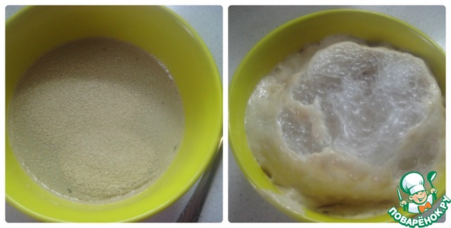 В теплой воде растворить 1 ч. л. сахара и дрожжи.