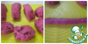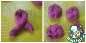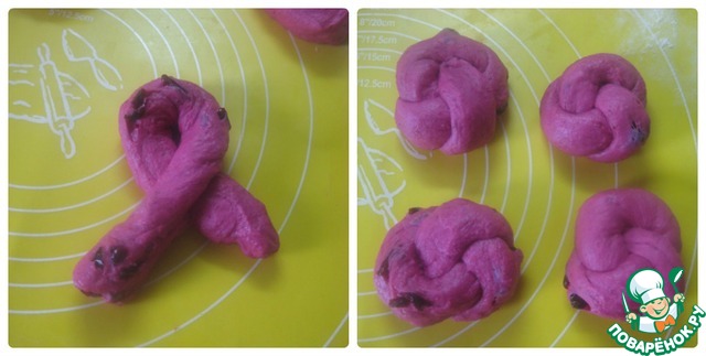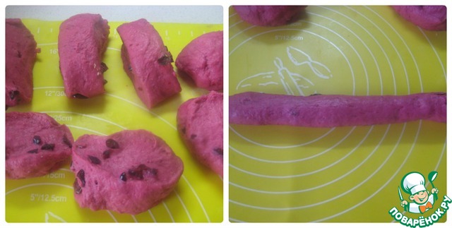 Подошедшее тесто обмять, разделить на кусочки (у меня получить 16 шт.).