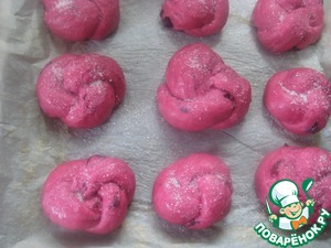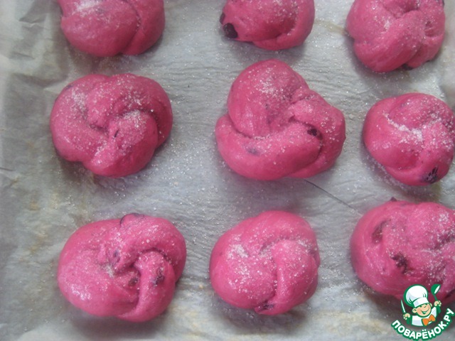 Розовые, сладкие булочки из свекольного теста с клюквой и сахарной посыпкой для уютного, семейного чаепития в дождливый, осенний день!