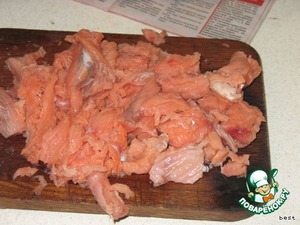 4-й слой: кусочки рыбного филе, специи, твердый сыр, майонез.