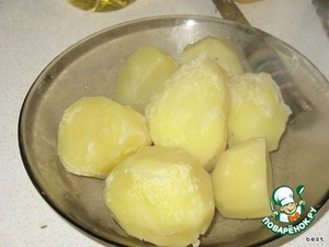 1-й слой: порезанный кружочками картофель, сверху специи и майонез.