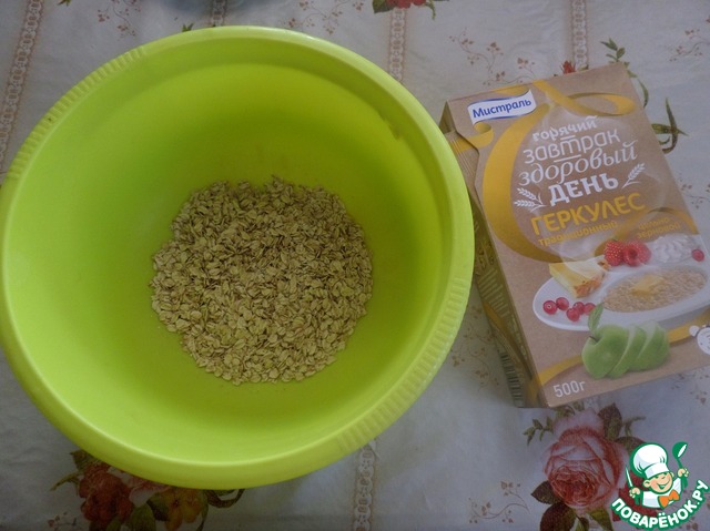 В чашку отмеряем необходимое количество овсяных хлопьев. Я использую хлопья ТМ "Мистраль".