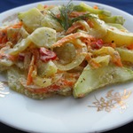 Цуккини (кабачки) варят, жарят, запекают и готовят на гриле. Из них можно сделать оладьи, котлеты, икру. Предлагаю приготовить цуккини по-венгерски. Это простое блюдо готовится быстро и имеет свою изюминку. Такая закуска подойдёт к мясным блюдам и отлично сочетается с гарнирами из картофеля, риса, гречки и макарон. Рецепт встретился на просторах инета.