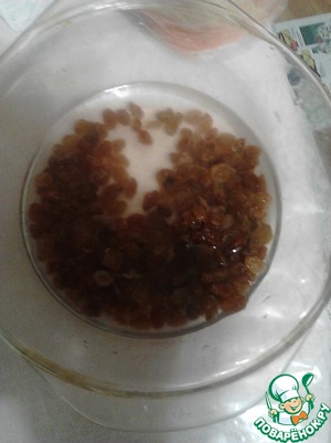 Изюм замочить в горячей воде, отжать и обсушить.