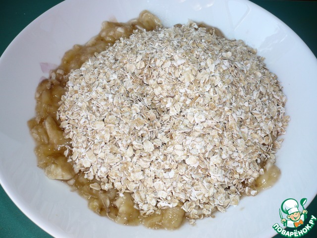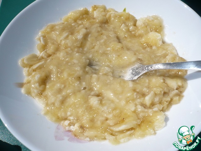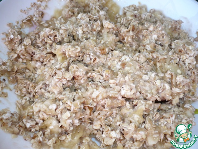 В банановую массу добавляем овсяные хлопья Экстра ТМ "Мистраль". Все хорошо перемешиваем.