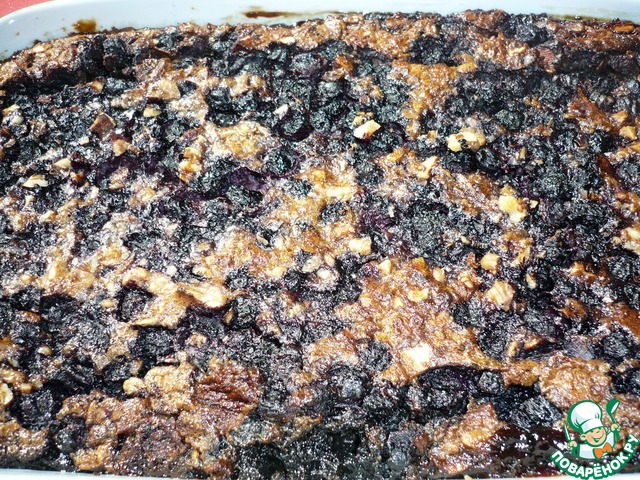 Сверху посыпаем запеканку оставшейся черникой и грецкими орехами.