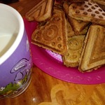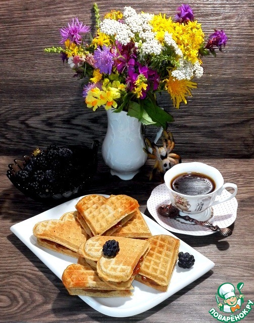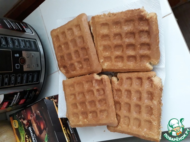 Разогрела вафельницу, смазала маслом низ и верх, и налила три столовых