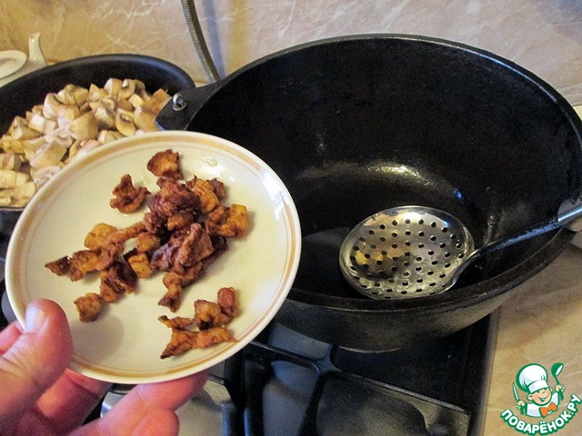 Вынимаем шкварки и поступаем с ними так как они заслуживают.