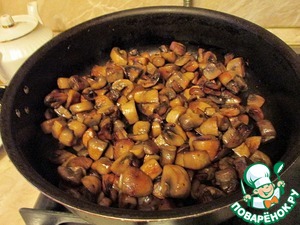 Пока лук обжаривается доводим грибы до вот такого румяного состояния и снимаем с огня.