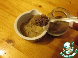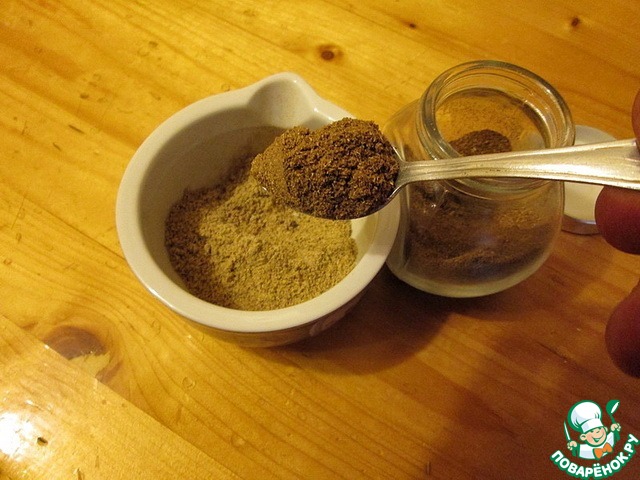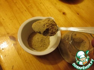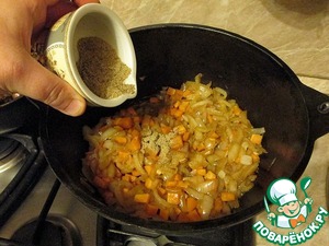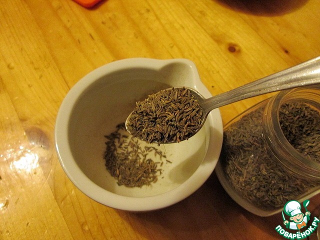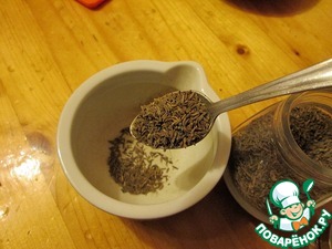 Пока лук с морковкой жарятся займемся специями. Берем ступку и кладем в нее зиру.