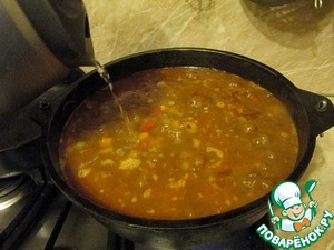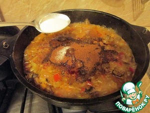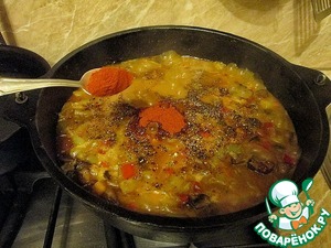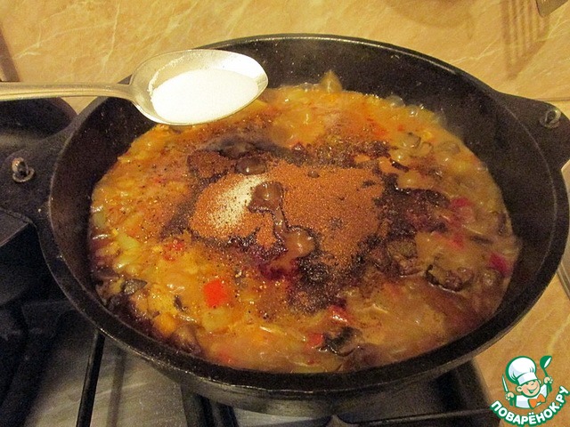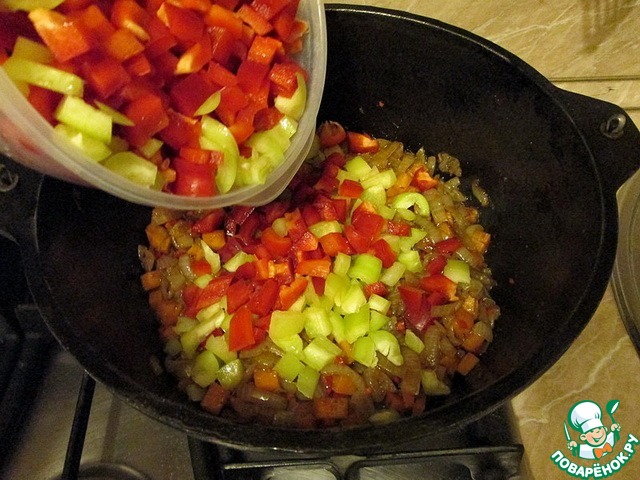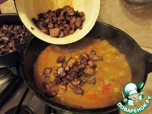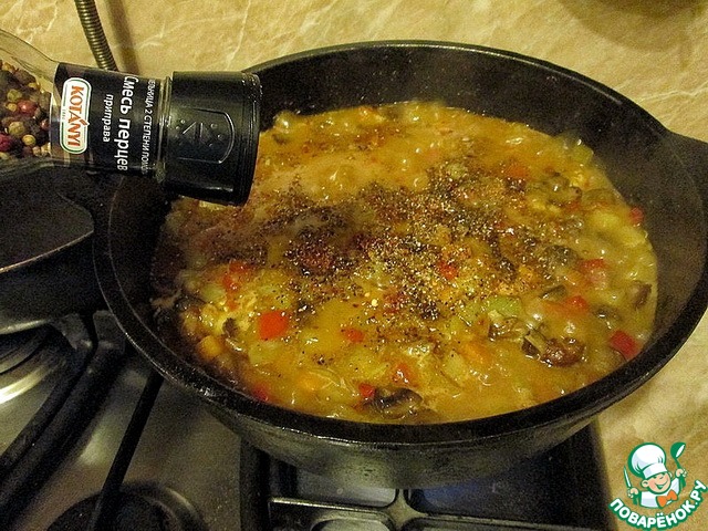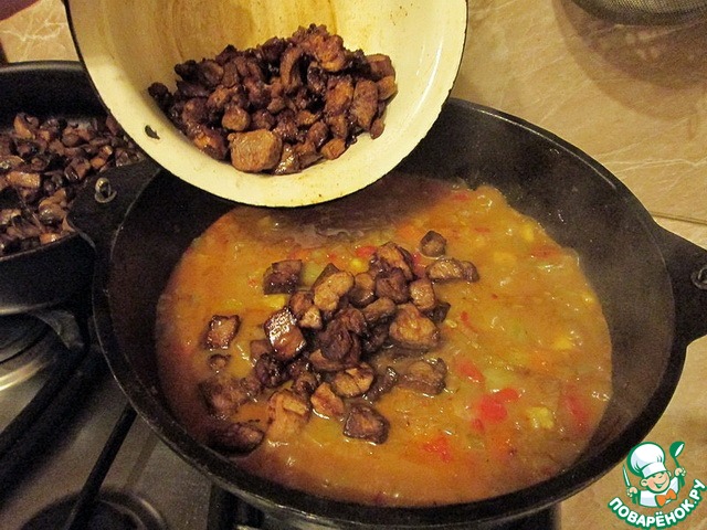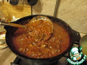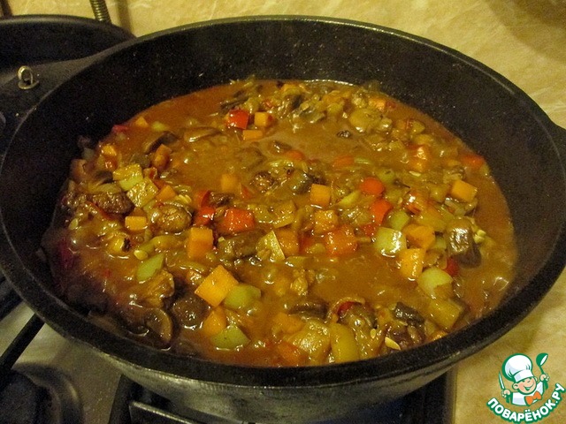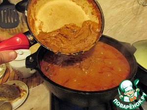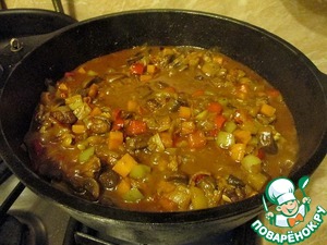 Ну вот, овощная основа готова. Закидываем в нее мясо.