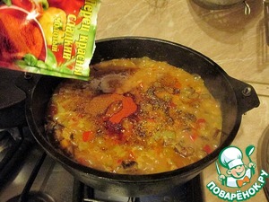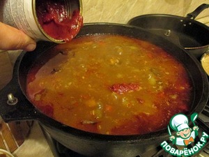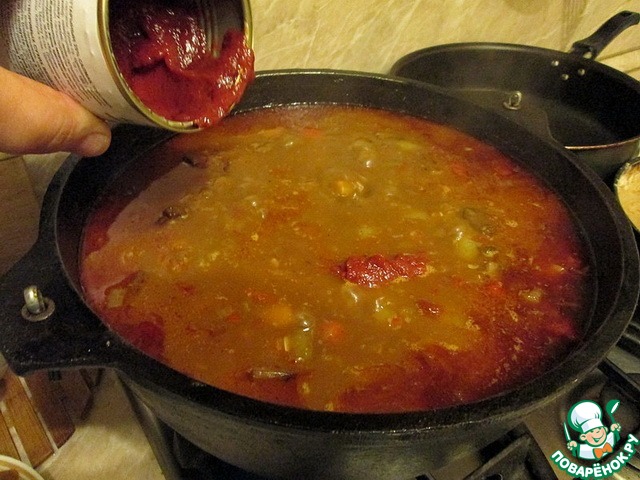 Прошло пол часа, добавляем томатную пасту и перемешиваем. Ждем 5 мин.