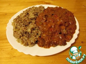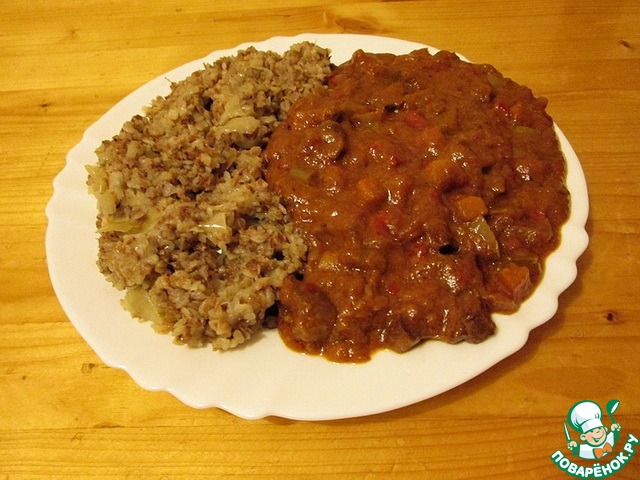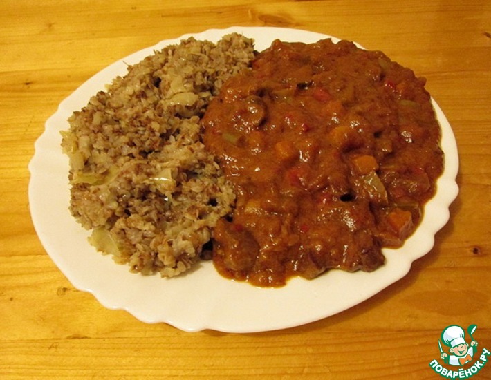 Вот так она на тарелочке уютно себя чувствует в соседстве с гречкой.