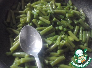 Стручковую фасоль отварить в кипящей воде 3 минуты. Затем обжарить в растительном масле. Остудить и дать стечь маслу.