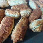 Нарезать жгутики кусочками. Обжарить в масле с четырёх сторон, переворачивая, или во фритюре.