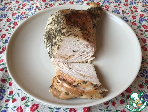 [+5]?ндейка получилась на славу! Розмарин, тимьян сделали свое дело. Запекала в духовке ( мульти нет) 1,5 часа. Половину времени под фольгой. ? молодая картошка взяла сок и аромат мяса, пальчики оближешь! Мы в восторге! Спасибо большущее!
