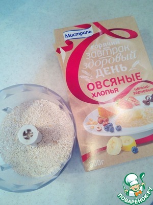 Овсяные хлопья измельчить до состояния муки или чуть крупнее