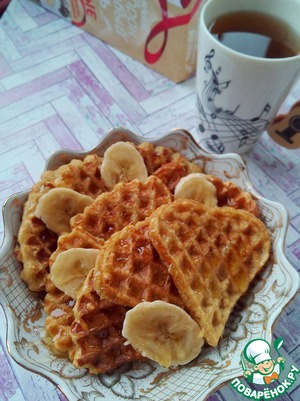 Рабочую поверхность вафельницы слегка смазать маслом и выпекать вафли до готовности (~ 4 мин)
