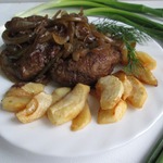 Описание: Хочу предложить приготовить великолепные отбивные из свиной печени. Они получаются нежными, мягкими, сочными и очень вкусными. А яблочный гарнир будет великолепным дополнением. И, конечно же, овощи! Поверьте, это очень вкусно! Рецепт нашла когда-то на просторах интернета.