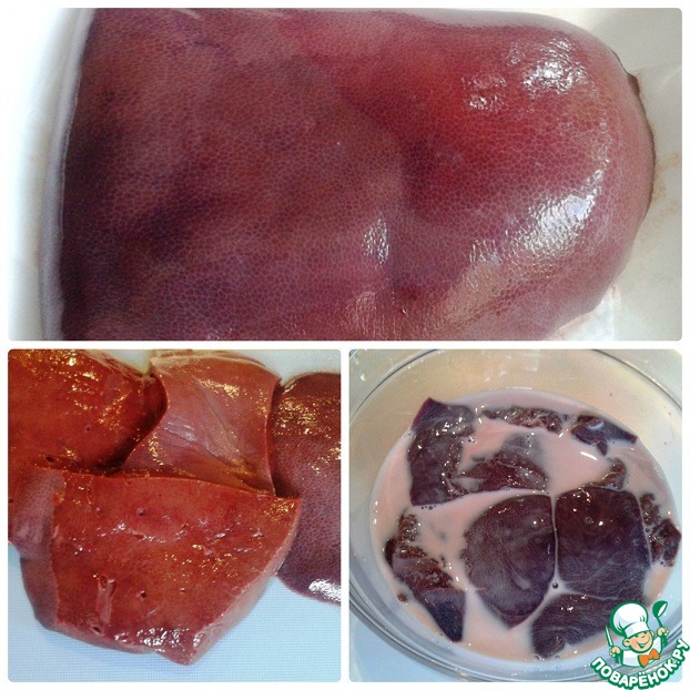 Затем сливаем молоко и откидываем печень на дуршлаг, чтобы стекла лишняя жидкость. |