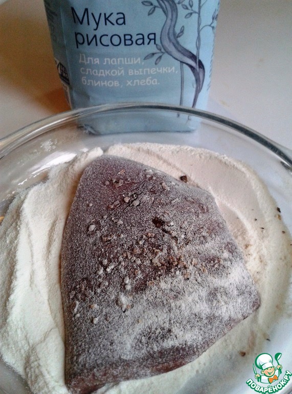 Затем обвалять отбивные в рисовой муке, именно в рисовой. Мне кажется, что получается намного вкуснее. Мука не собирается комочками и ложится ровным слоем! |
