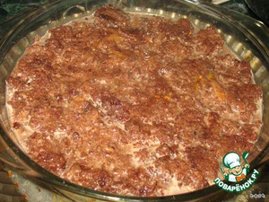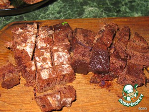 Кусочки кекса уложить в смазанную форму и залить шоколадной смесью.