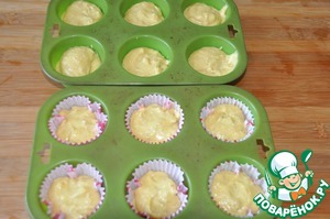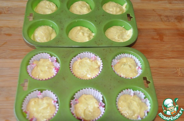 Берём удобные для запекания формочки, у меня силиконовые. В часть из них положила манжеты, но в этом не было необходимости, кексики прекрасно выходили из формы.