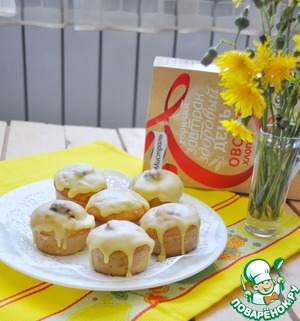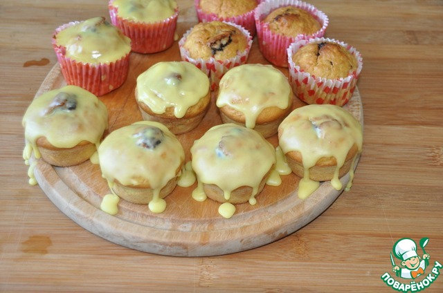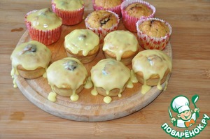 Готовые кексики достаём из формы, можно подавать их сразу в таком виде, можно посыпать сахарной пудрой или покрыть глазурью. У меня готовая глазурь.