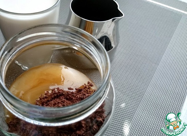 Первым делом необходимо сварить кофе. Лучше, конечно, чтобы это был эспрессо, но, можно сделать и не такой крепкий, например, в турке - подумайте, как Вы обычно начинаете свой день, чтобы не перестараться, потому что каша полностью впитает в себя ту крепость, на которую Вы решитесь, и отдаст сполна утром вместе с бодростью и положительным зарядом энергии)