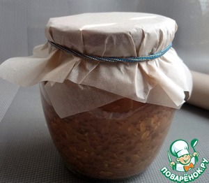 Остальные продукты специальной подготовки не требуют, поэтому можно собирать кашу. Помещаем стакан хлопьев в пол-литровую банку.