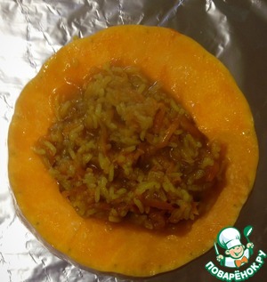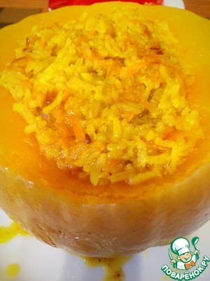Сейчас сезон тыквы и это блюдо будет очень кстати на вашем столе, тем более, что выглядит оно очень аппетитно! А начинку можно сделать любую: и сладкую, и соленую, и постную и с мясом! Сегодня у меня постный плов. Ну очень вкусный!
