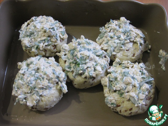 Из теста формуем небольшие булочки, выкладываем в форму или на противень