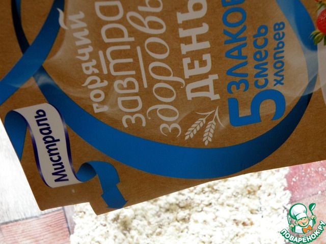 - Хлопья злаковые ((250 мл объем стакана) хлопья "5 злаков" ТМ "Мистраль") — 1/2 стак.