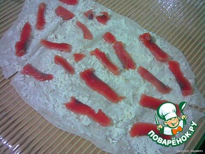 Замариновала сeмгу, еле дождалась когда она приготовится, а когда свершилось ЧУДО, окозалось, что хлеба в доме нет))) Пришлось придумывать чем заменить и тут под руки попался один листик лаваша.