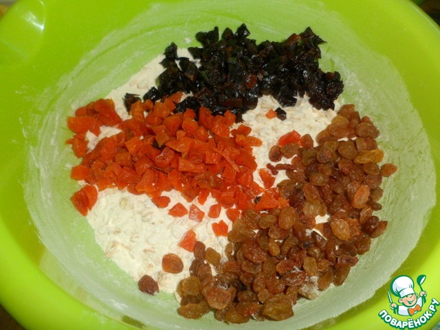 Добавить к смеси сухофрукты, перемешать.