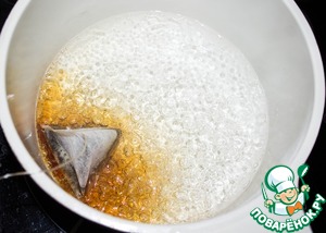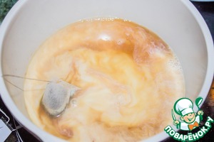 • В кипящую воду опускаем пакетик чая и кипятим 1 минуту. Чай лучше брать ягодный или фруктовый.