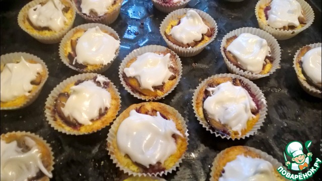 Рецепт «Овсяное пирожное со сливами и меренгой»: