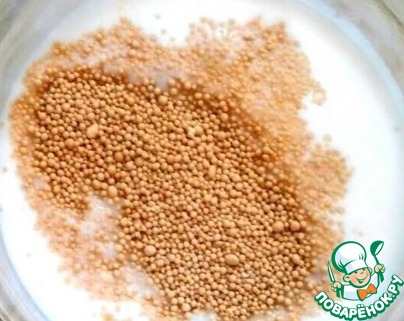 К 150 мл теплого молока добавить 8 граммов сухих дрожжей + 1 ч. л. сахара. Накрыть крышкой и оставить на 20 минут.
