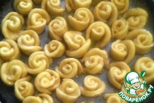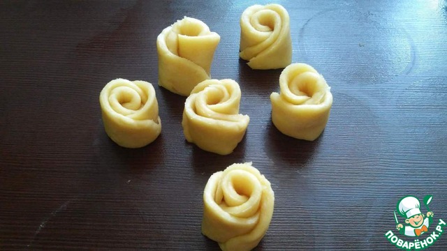 Когда все розочки будут готовы их необходимо перенести в форму предварительно смазанную растительным маслом