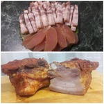 p.s. Грудинка будет острее, если натереть её давленым чесноком и посыпать красным острым перцем.