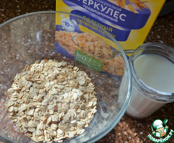 - Хлопья овсяные (220 мл., геркулес цельнозерновой от ТМ Мистраль) — 1 стак.