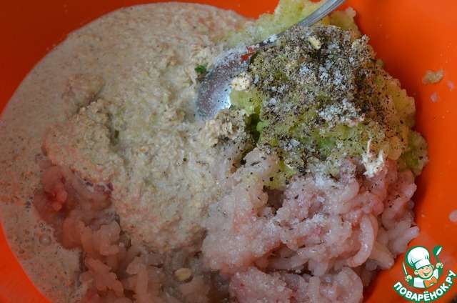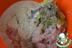 Измельчить на мясорубке рыбу, овощи и замоченные хлопья.