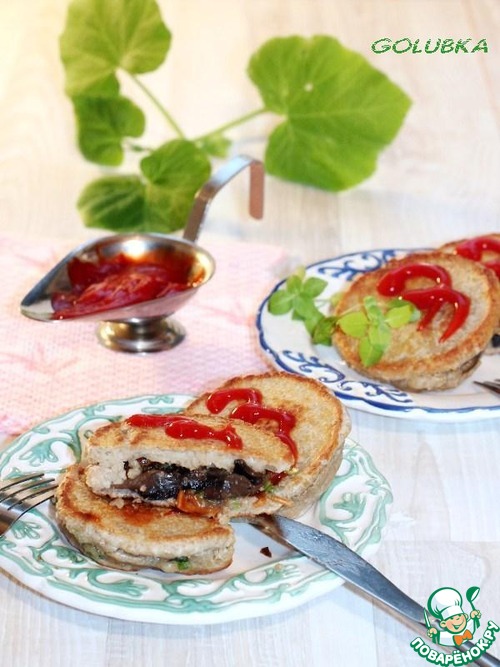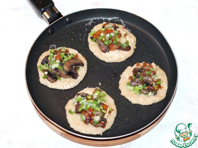 Рецепт «Блинчики из отрубей с грибным припеком»: