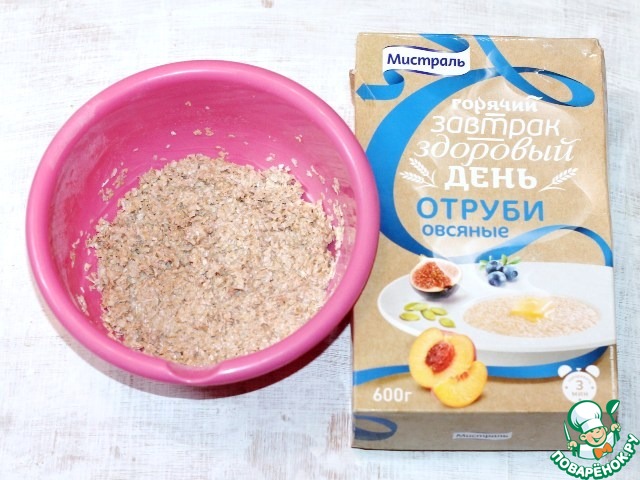 1. Приготовим тесто для блинчиков. Смешиваем отруби с горячим молоком, накрываем крышкой, даем время настояться, 5 минут.