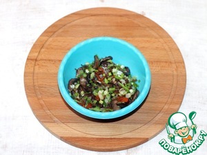 5. Смешиваем начинку с мелко порезанным зеленым луком.
