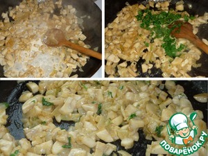 Влить сливки и протушить до загустения, добавить мелкорубленную петрушку. Все перемешать.