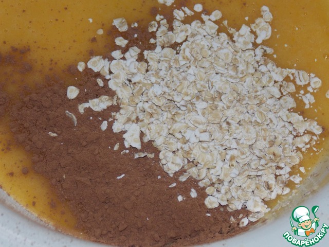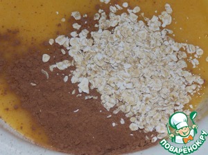 Добавить какао - порошок и овсяные хлопья. Тщательно перемешать.
