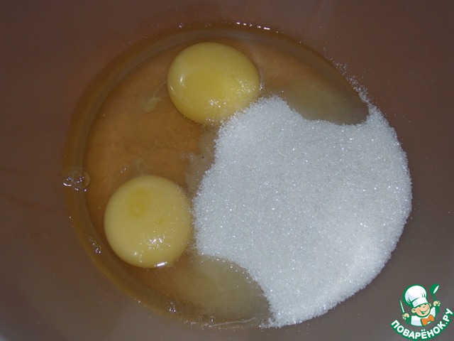 Добавить в тесто какао - порошок, разрыхлитель и муку. Перемешать до однородности.