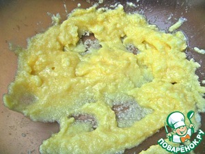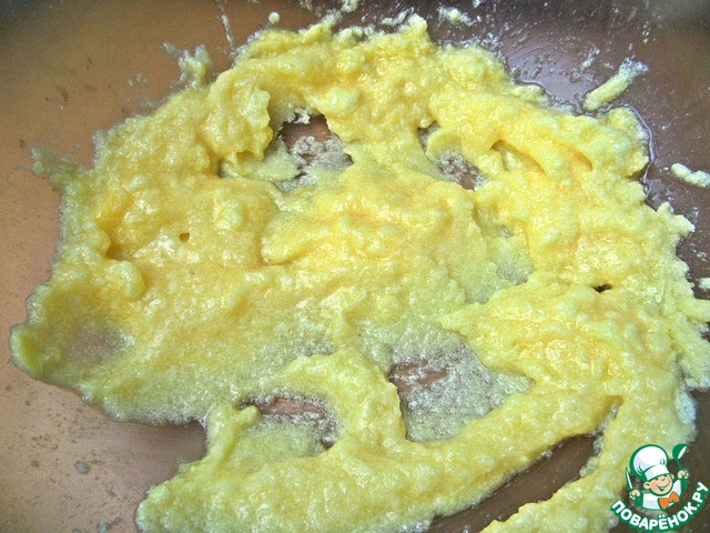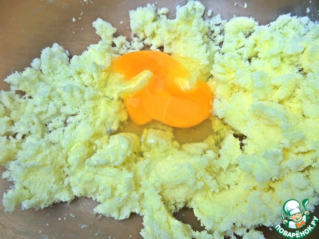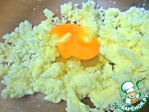 Растереть масло с сахаром, ванилью, вбить яйцо.