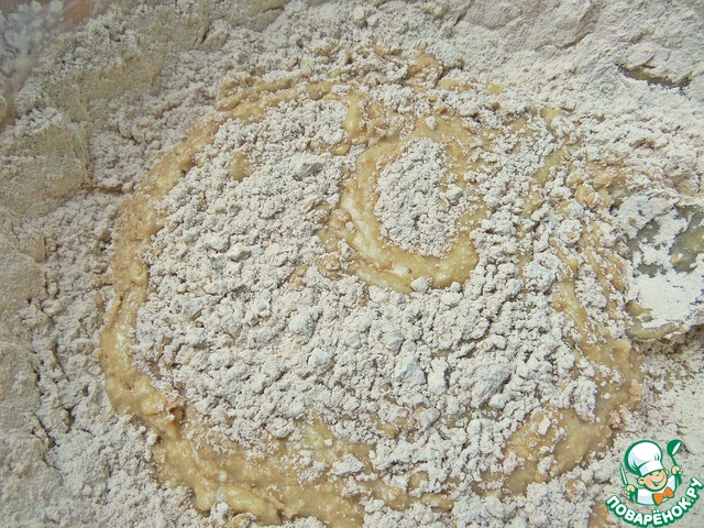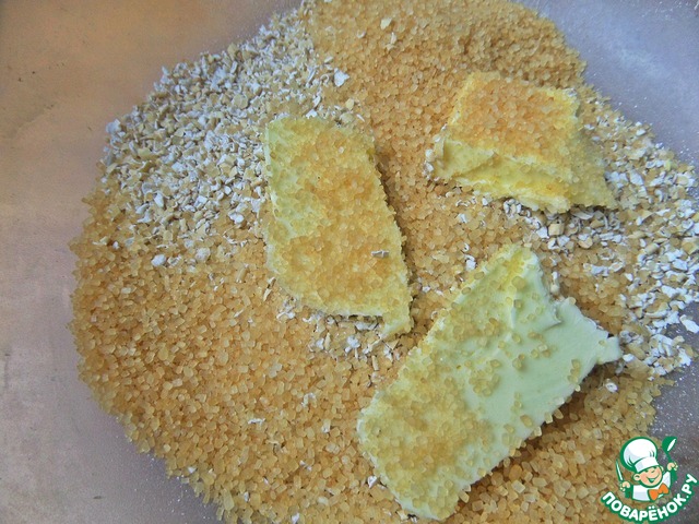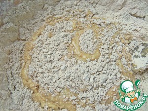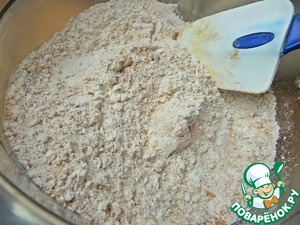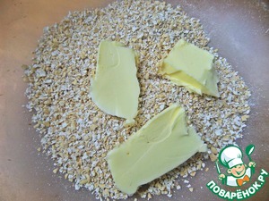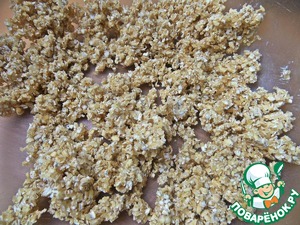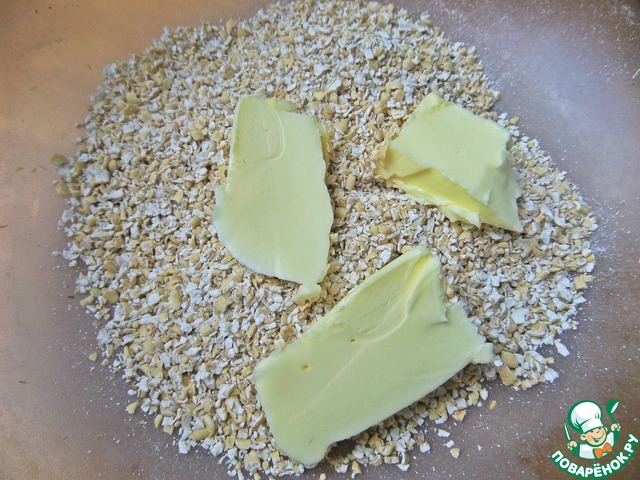 Готовим крошку-штрейзель. Мягкое масло смешать с овсяными отрубями.